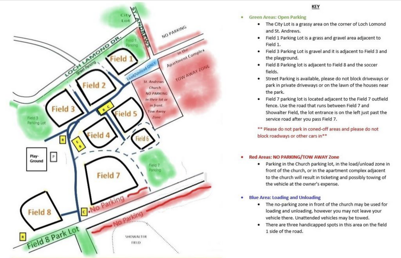 December 13th: Winter Park Babe Ruth Field 7 - Field 7 Parking Lot is located adjacent to the Field 7 outfield fence. Use the road that runs between Field 7 & Showalter Field, the lot entrance is on the left just past the service road after you pass Field 7. See image below.